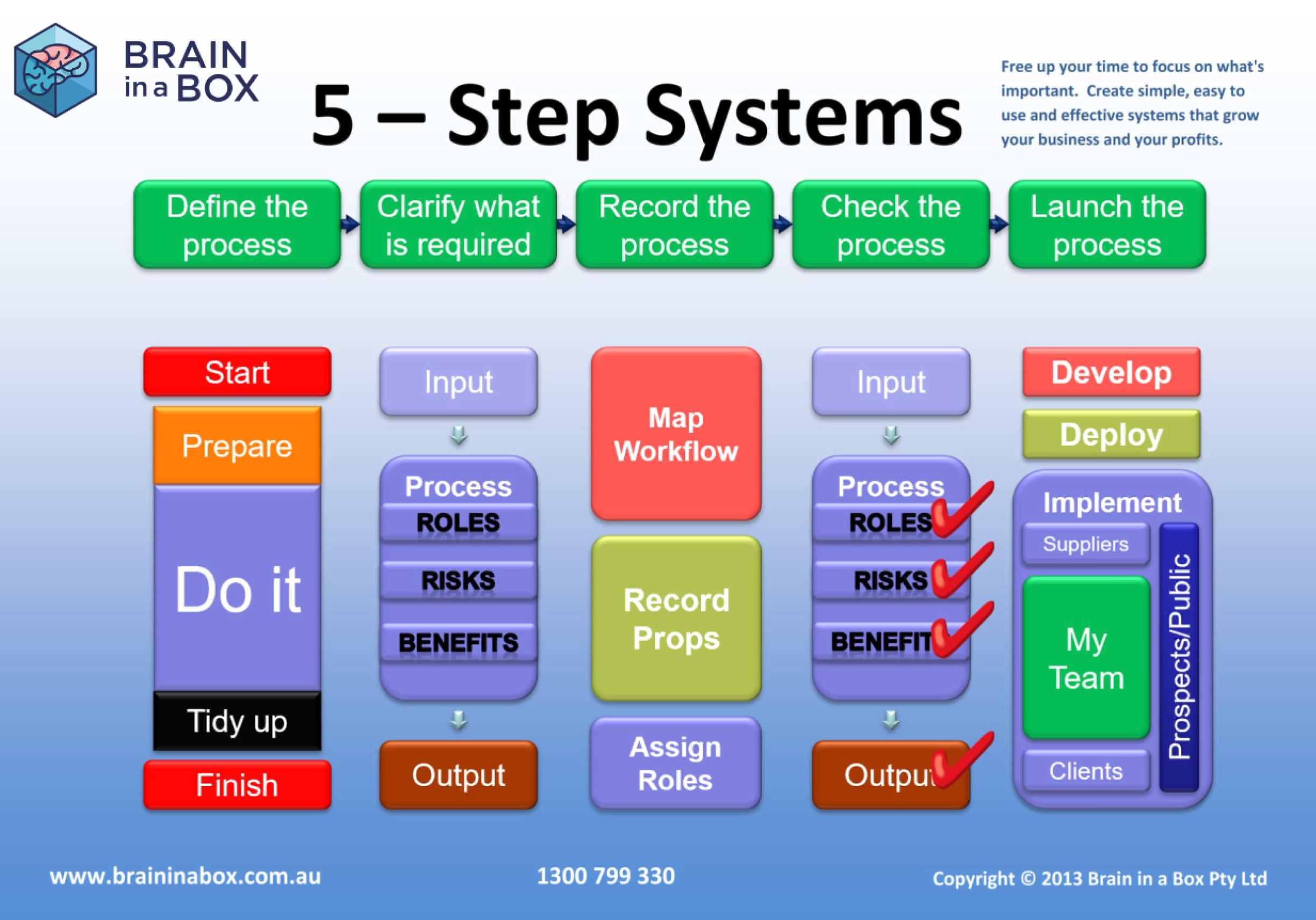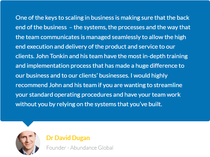For example, we followed our 5-Step Systems framework with Colin and his team to capture all of the major tasks in the business, including the process to record, store and retrieve these critical dental records. Following the framework, the process became so bullet-proof that Colin was confident his team could apply it consistently with absolute reliability.